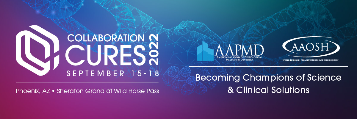 Next year Collaboration Cures 2022 will be hosted at the Sheraton Grand at Wild Horse Pass, in Phoenix Arizona, September 15 -18. We are planning another event for practitioners seeking to satisfy the growing demand from patients wishing to identify and treat their reversible causes of chronic diseases and poor performance as well as parents searching for knowledgeable and skillful practices to protect their children from developing these conditions. All will be seeking additional layers of protection and a safer, healthier quality of life in an uncertain and changing world.